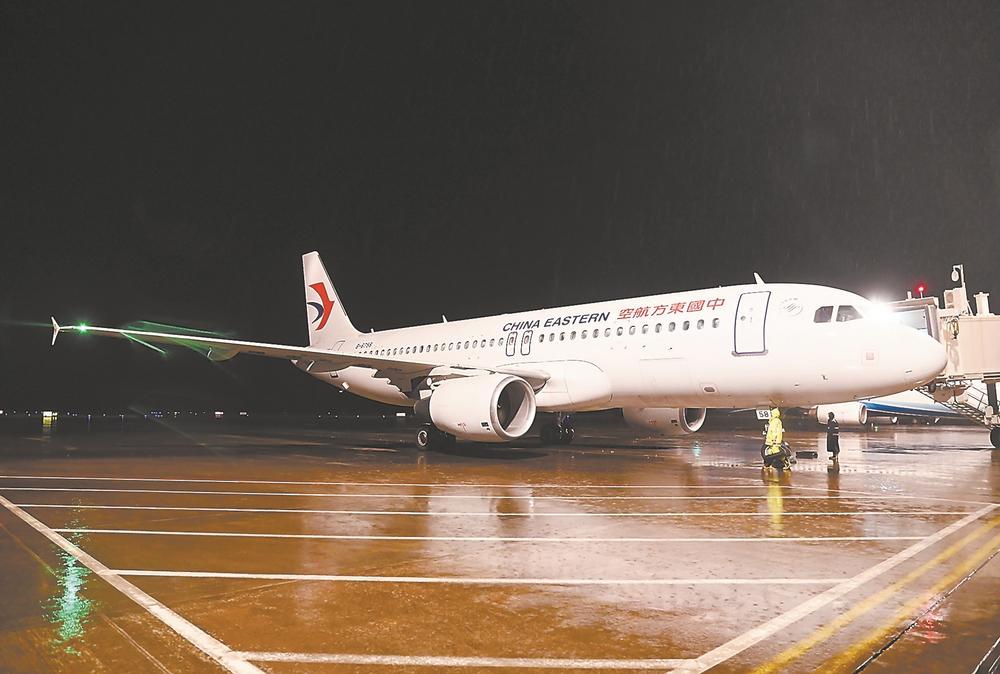 夜幕降臨,首航航班順利抵達(dá)三明機(jī)場(chǎng)。